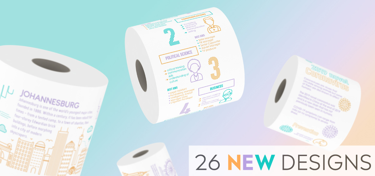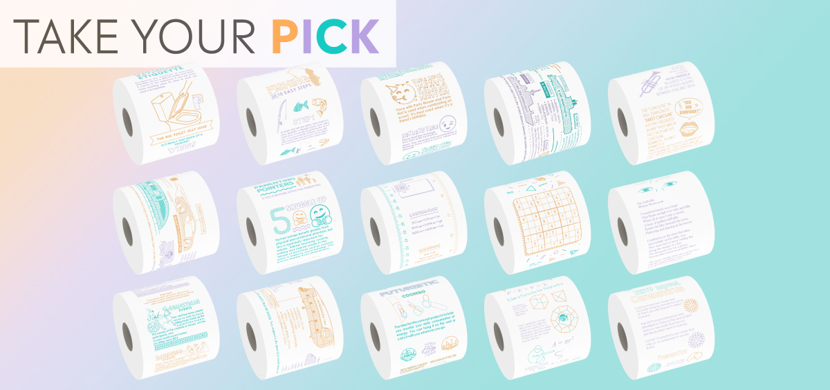 Feast your eyes (and mind) on the all-new Dinu Multi printed bathroom tissue rolls.